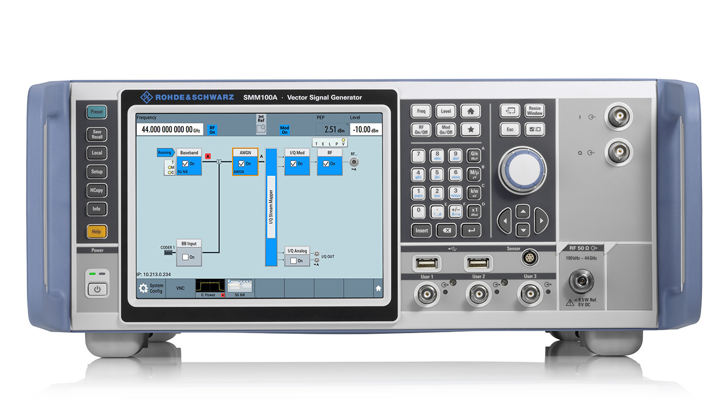 R&S SMM100A 矢量信號發生器,頻率范圍:100 MHz至44 GHz。覆蓋常見的Sub-6 GHz頻段、7.125 GHz 的 5G NR FR1 和 Wi-Fi 6E 頻段,以及最高 44 GHz 的 5G NR FR2 頻段。