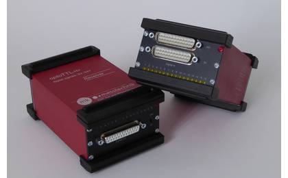 optoTTL光電隔離轉換器用于TTL數字信號的光傳輸,最多可傳輸16個采樣率為40 MS/s(每通道)的數字信號。optoTTL由兩個相同的收發器連接在一起使用,通過光纖相互連接。