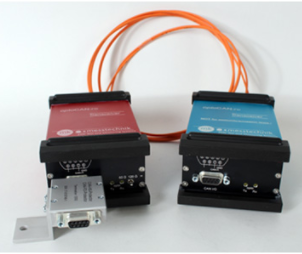 optoCAN-FD光電隔離轉換器用于車載總線FD CAN信號的光電傳輸,傳輸速率可達10Mbit/s。由兩個相同的收發器連接在一起使用,通過光纖相互連接,鎳氫電池供電,金屬屏蔽外殼。