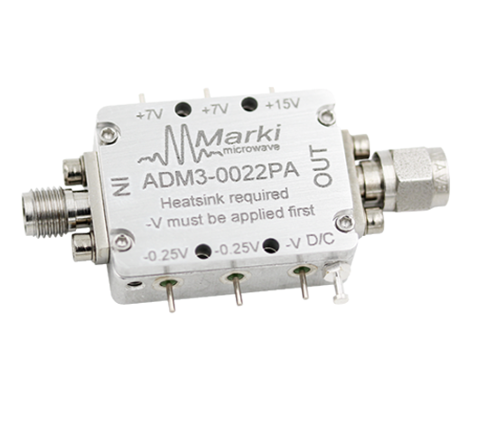 ADM3-0022PA的增益和輸出功率足以從高達22 GHz的+0 dBm輸入功率產生1W的輸出功率。它在單個封裝中包含 3 組串行寬帶放大,內置均衡功能,可提供平坦的增益和輸出功率曲線。本產品是一種未受保護的放大器模塊,用于實驗室使用。