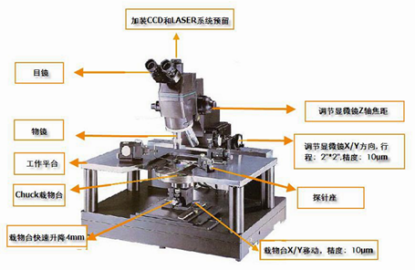 - 卡盤座有小搖桿,提起90度后,可以使卡盤快速線性上升4mm,在做wafer點測時方便快速移動點測位置,同時做普通die或者decap后芯片點測時,方便快速更換樣品。