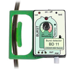 BD 11型猝發(fā)序列探測器用于驗證電纜中的猝發(fā)電流脈沖或ESD電流脈沖,例如在一個負責設(shè)備中。它簡化了偶爾出現(xiàn)的設(shè)備故障的原因研究過程。該探測器小巧易拿,靈敏度高且能無級調(diào)節(jié)。
