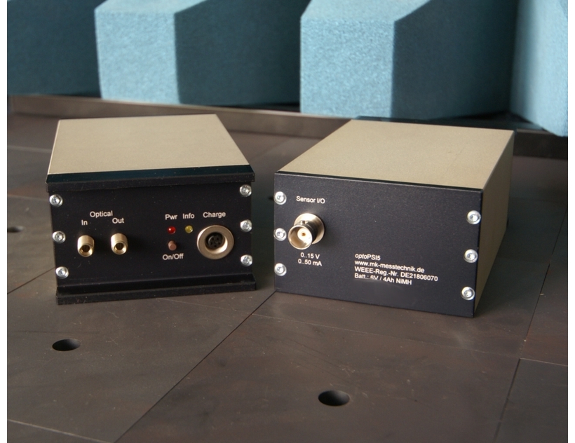 optoPSI5光電隔離轉換器用于PSI5信號的雙向光傳輸,傳輸速率可達 200kbit/s。由兩個相同的收發器連接在一起使用,通過光纖相互連接,鎳氫電池供電,金屬屏蔽外殼。