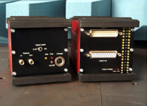 optoTTL光電隔離轉換器用于數字信號的光傳輸,最多可傳輸16個采樣率為40 MS/s(每通道)的數字信號。optoTTL由兩個相同的收發(fā)器連接在一起使用,通過光纖相互連接。