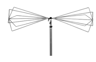 BBAL 9136 雙錐元件與 VHA 9103B 天線支架/巴倫相結合。