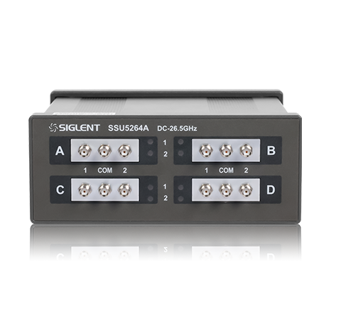 SSM5000A 系列開關矩陣,可對網絡分析儀,信號源,頻譜儀等設備的測試端口數進行擴展。該系列命名為 SSM5XYZA,其中 X 代表工作頻率,Y 代表合路端口數目,Z 代表分路端口數目(除以 6)。X 為 1 時,工作頻率范圍涵蓋 9 kHz-9 GHz,X 為 3 時,工作頻率范圍涵蓋 100 kHz - 26.5 GHz。輸入端口最多 4 個,輸出端口最多 24 個,支持 USB、LAN、Direct Control 通信方式,其中通過開關矩陣上的 Direct Control 接口可進一步擴展測試端口的數量,支持簡化的多端口校準算法,可大大提高校準的效率,除支持 Siglent 儀器儀表外,也支持其它主流的儀器儀表產品,適配 19 英寸標準機箱,可廣泛應用在天線,5G 器件模塊等多端口測試環境上。